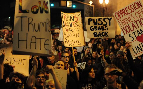 Donald Trump fél napon belül kétszer is Twitter-üzenetet tett közzé. Az elsőt csütörtökről péntekre virradóra, s ebben azt írta, hogy egy "nagyon nyílt és sikeres elnökválasztás után most a média által ösztökélt profi tüntetők protestálnak". Hozzátette: "ez nagyon tisztességtelen". Második bejegyzésében azonban - amelyet pénteken délelőtt tett közzé -, hangot váltott, és már úgy fogalmazott, hogy "szeretem a tüntetők szenvedélyességét". Ebben a bejegyzésben még hozzátette: "összefogunk majd".